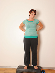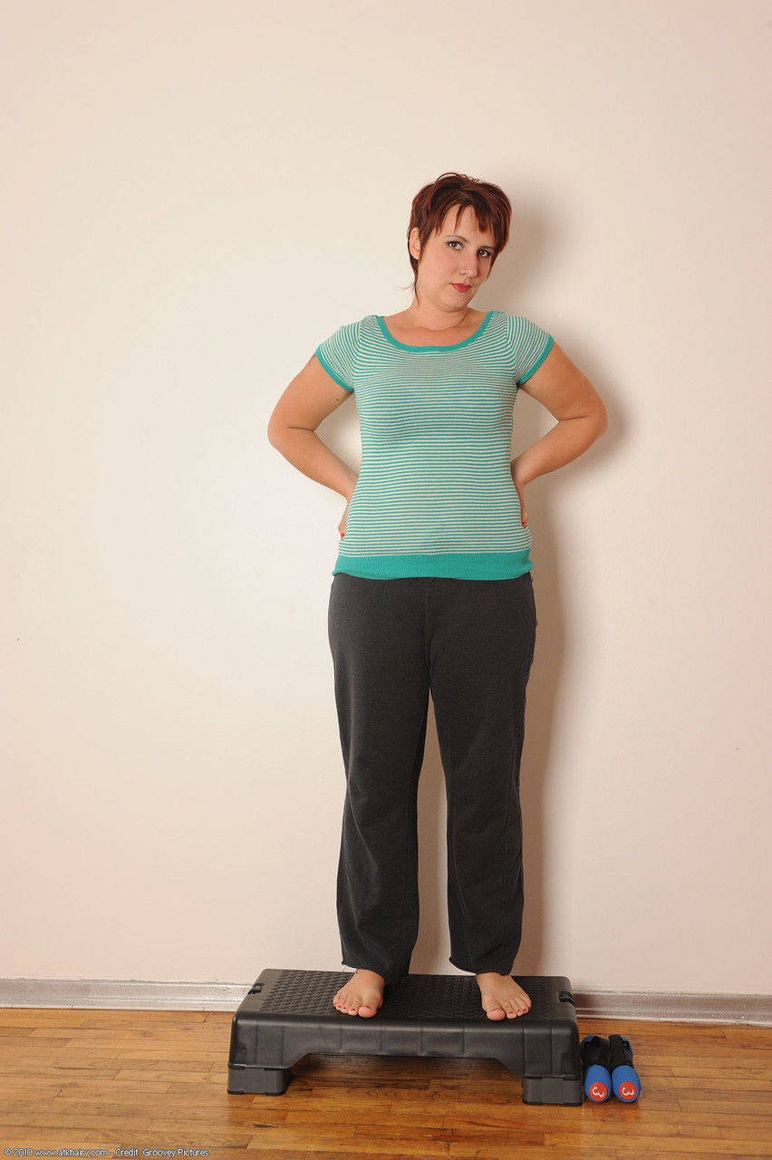 Chubby amateur wife Luci Lamoore exposes her saggy pierced tits and hairy cunt